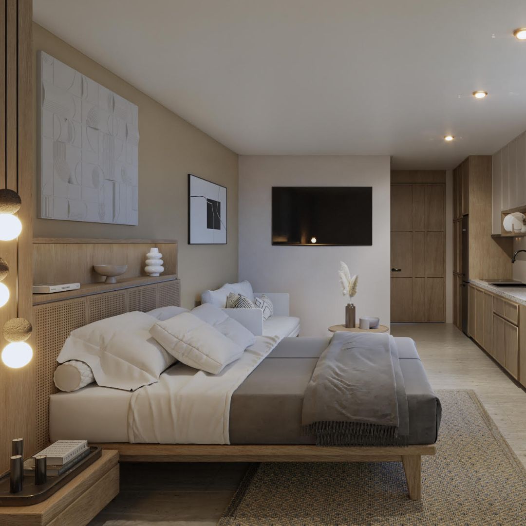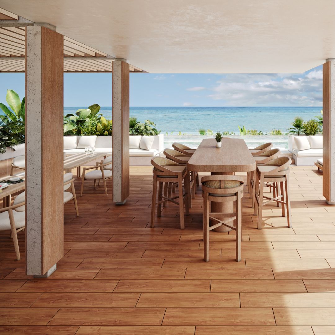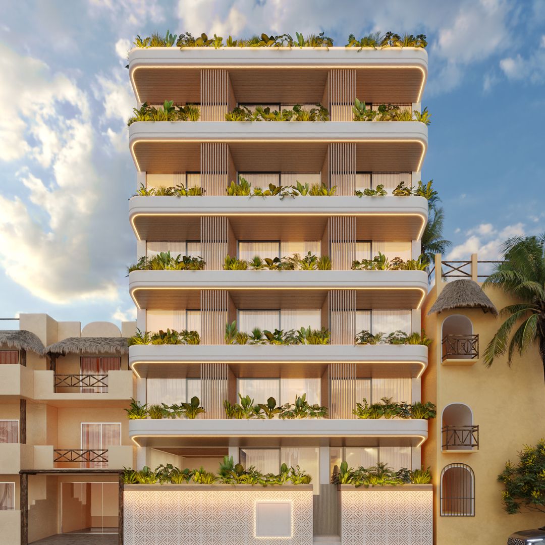 El desarrollo integra departamentos modernos con distribuciones funcionales, amplios ventanales y acabados de alta calidad que permiten crear espacios luminosos y confortables. Su diseño busca aprovechar al máximo la cercanía con el mar y el entorno tropical de Playa del Carmen.