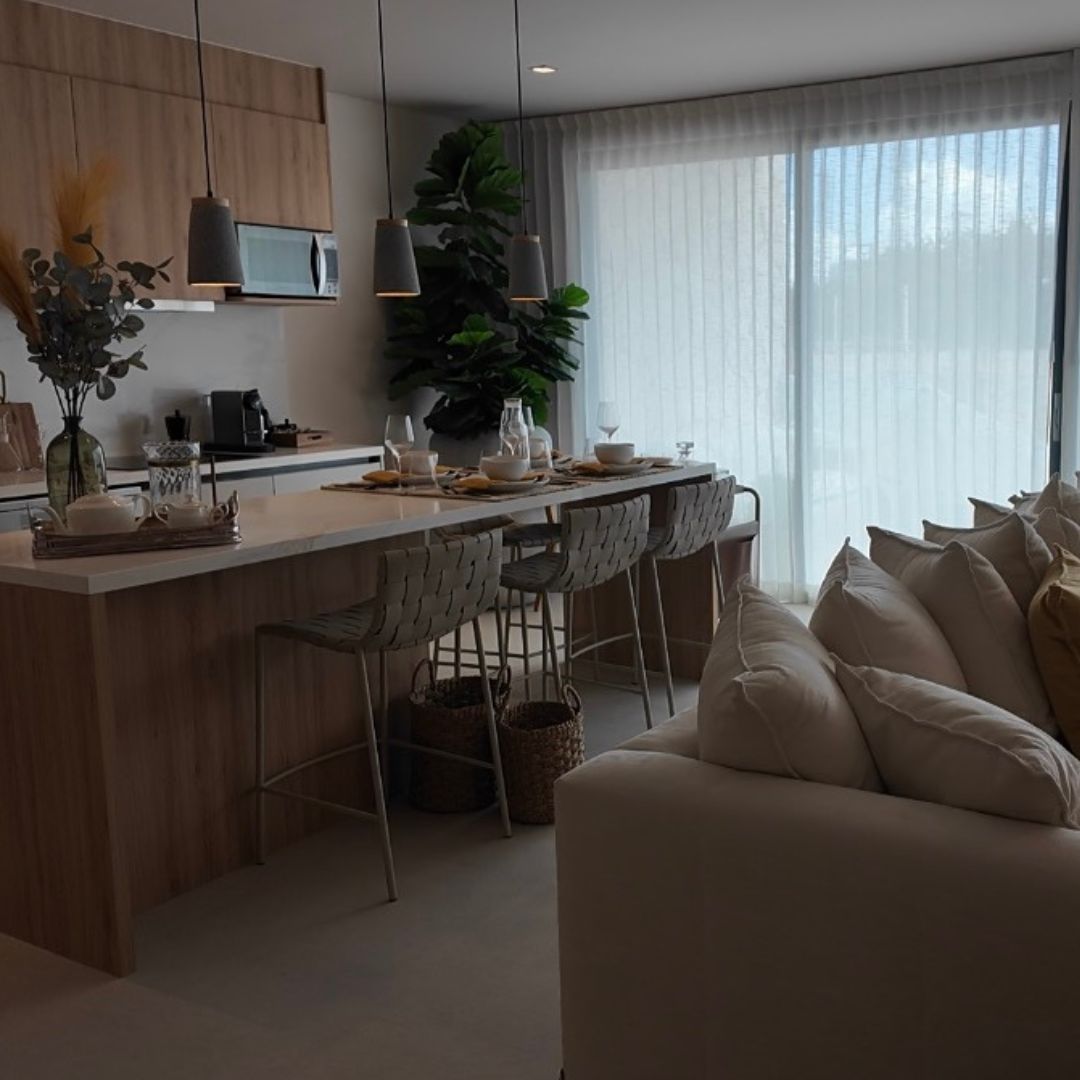 El desarrollo integra arquitectura moderna con espacios funcionales, amplios ventanales y terrazas privadas que permiten disfrutar de la iluminación natural y del entorno tropical característico de la región.
